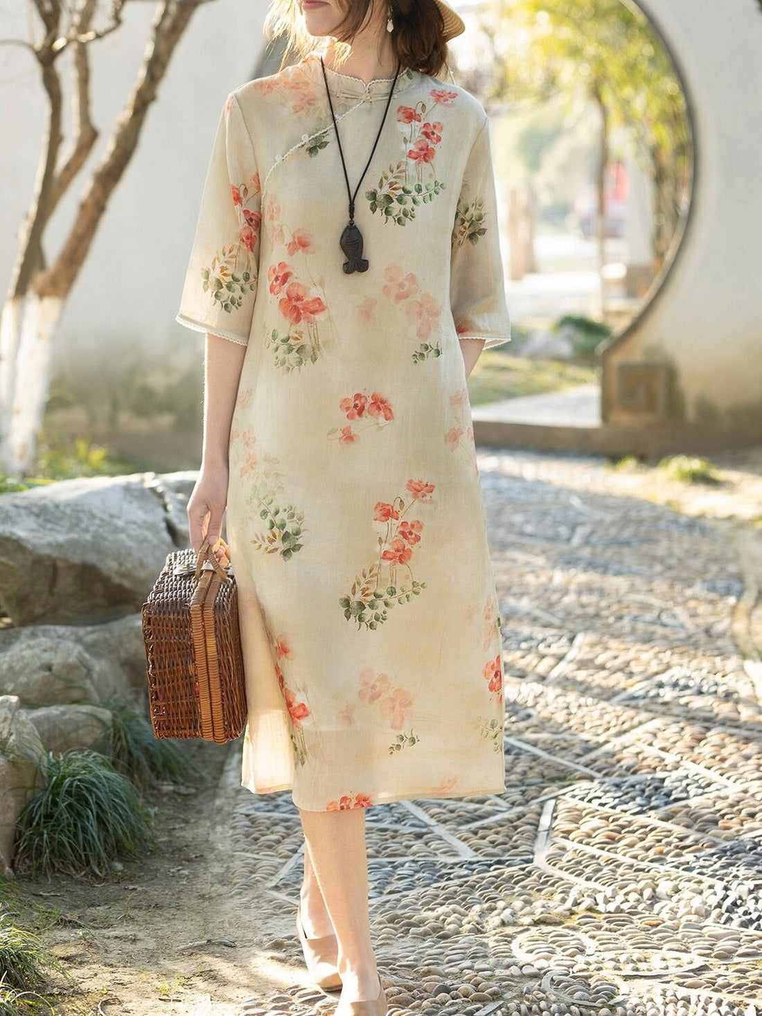 Women's Cotton And Linen Improved Qipao Dress With Stand Collar
